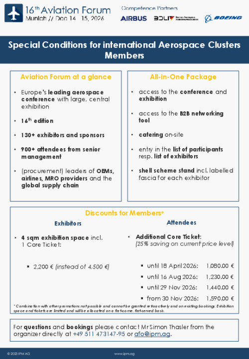 Innovative networking formats and an AI-powered B2B matchmaking software provide you with the perfect platform for exchange and building partnerships for the new era of the aviation industry. Further information can be found on the organizer’s website.
