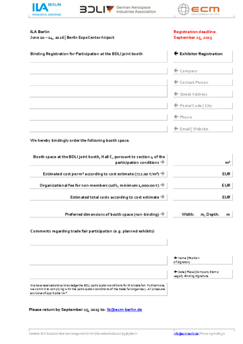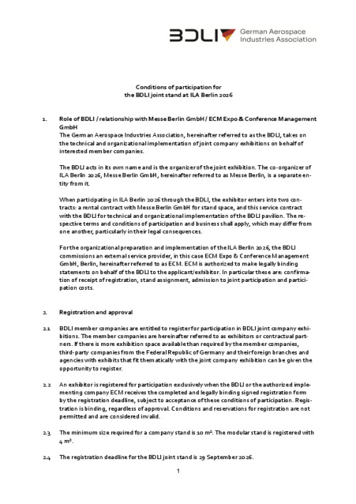 #ILA26 is one of the most important industry gatherings in Europe, where central challenges such as European competitiveness, sovereignty, and innovation are at the center of discussion. The BDLI joint stand at ILA offers interested companies an attractive and cost-effective opportunity to showcase themselves to an international audience and expand their network.