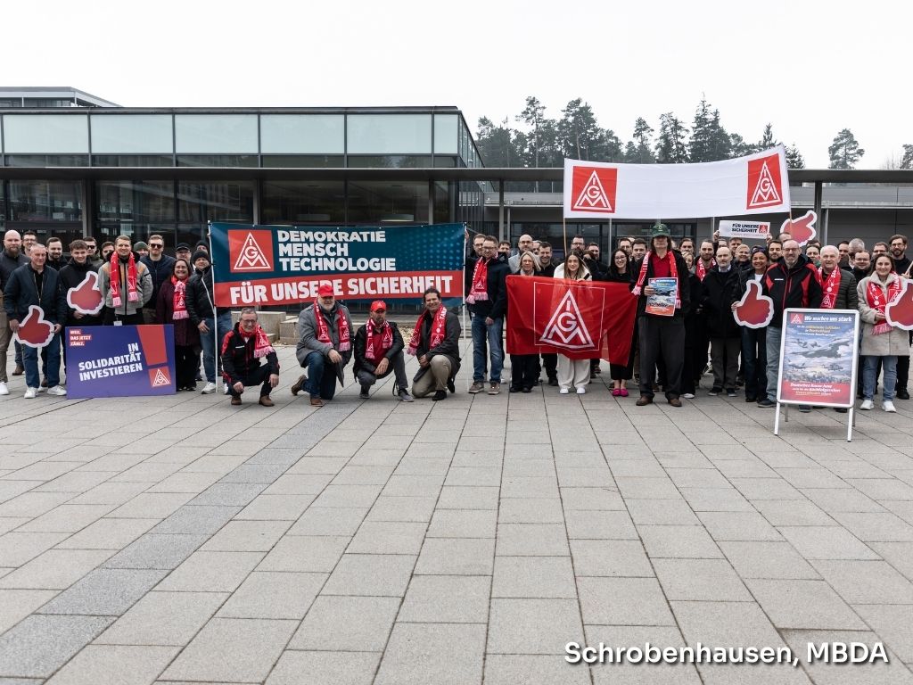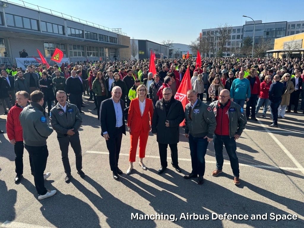 Bundesweit traten Beschäftigte bei öffentlichen Kundgebungen und betrieblichen Aktionen für die Zukunftsfähigkeit der militärischen Luftfahrtindustrie in Deutschland ein. Viele Beschäftigte fürchten mittelfristig um ihre Jobs, da das Future Combat Air System (FCAS) zu scheitern droht. IG Metall und BDLI fordern die Bundesregierung deshalb zu einem neuen Lösungsansatz mit einem zweiten Kampfflugzeug unter deutscher Federführung auf.